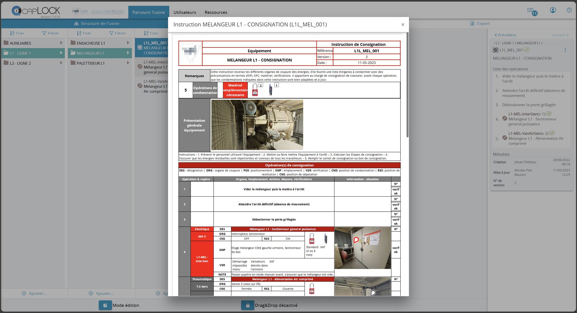 - La création / mise à jour ultra rapide de modes opératoires de consignation